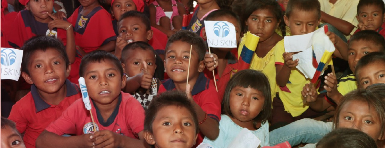 Wayuu children gathered from seven different villages in the Kaimaran school center and received the Nu Skin delegation with American, Colombian, Wayuu and Nu Skin Flags. Children performed traditional dances to honor their donors and were happy to receive their VitaMeal meal along with back-to-school backpacks filled with school supplies.