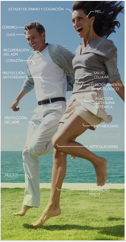 Por medio de nuestras investigaciones exclusivas en el campo de la expresión genética y de la literatura más comprensiva en el campo de la prevención del envejecimiento, hemos seleccionado ingredientes con base en sus beneficios únicos para la salud y en su habilidad para impactar de manera positiva la expresión de los genes relacionados a nuestros mecanismos internos de defensa y prevención del envejecimiento.